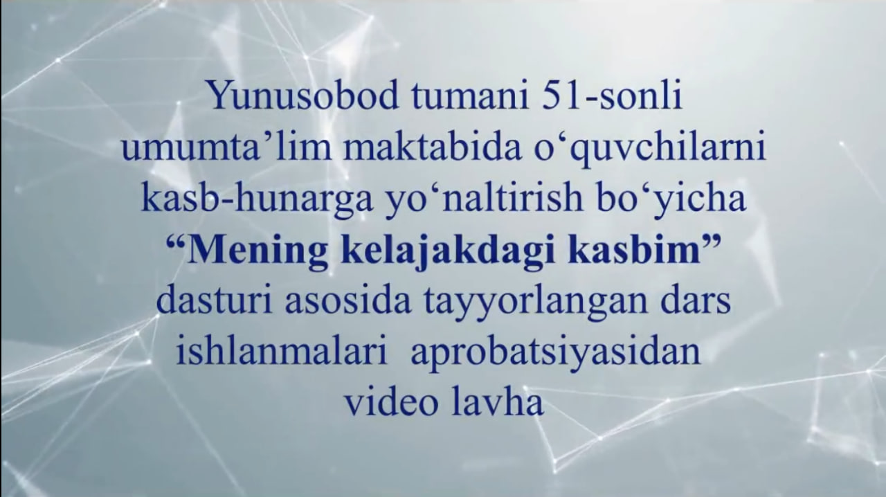 4. “Mening kelajakdagi kasbim” dasturi asosida maktab maslahatchilari tomonidan 7-9-sinf oʻquvchilarining kasbiy qiziqishlari, qobiliyatlari va iqtidorlari aniqlanib, ularni akademik taʼlim yoki kasb-hunarga yoʻnaltirish ishlari tashkil etiladi.